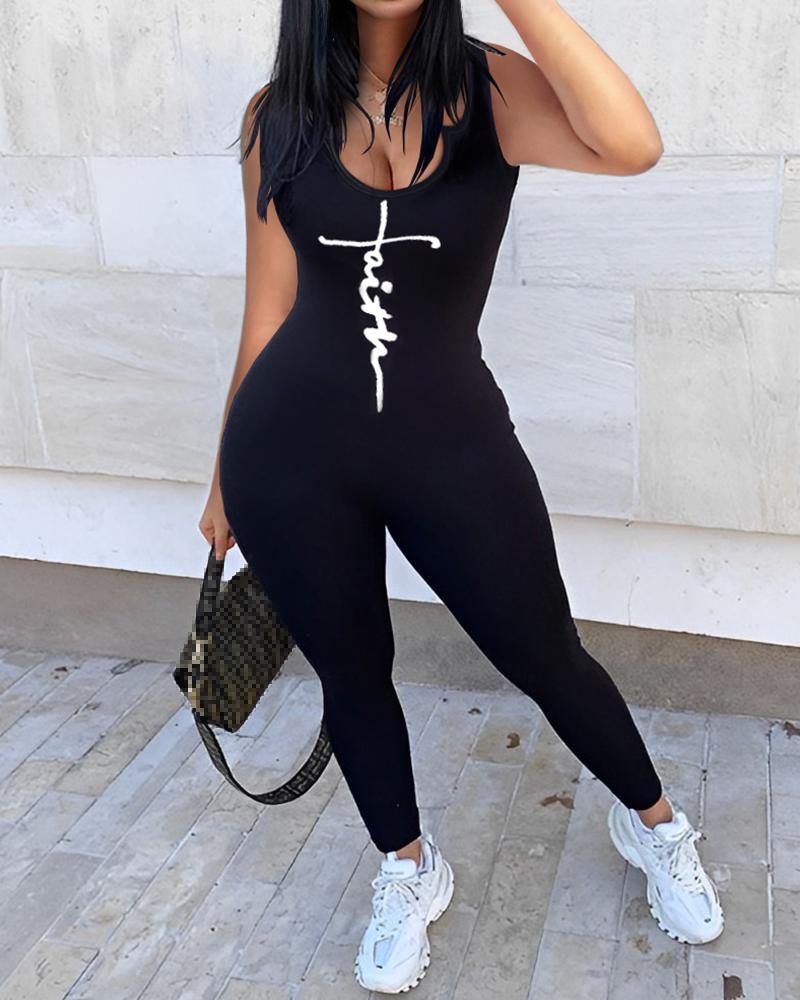 Faith Print U-Neck Sleeveless Skinny Jumpsuit